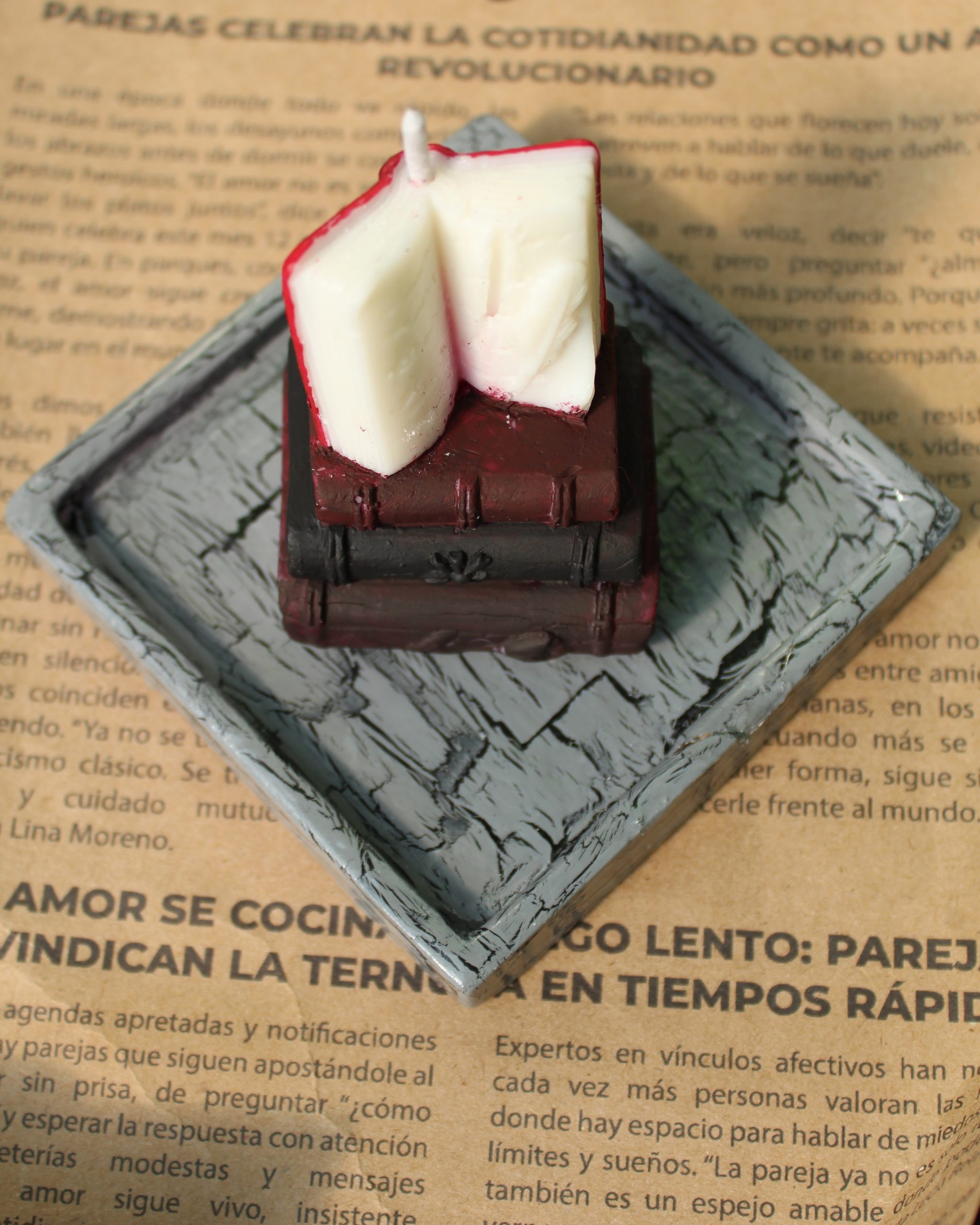 Esta velita es un detalle encantador para los amantes de los libros, con un diseño artesanal y personalizado que la convierte en un regalo único.